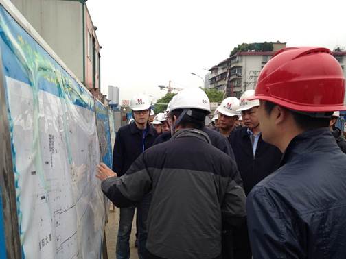2014年4月16日9點30分,地鐵集團董事長劉玉華一行來到武漢市軌道交通四號線二期八標(biāo)工地進(jìn)行了視察工作,我公司王總經(jīng)理陪同地鐵領(lǐng)導(dǎo)視察了工地,就工地的施工進(jìn)度、工地的安全文明、出入口的工期問題進(jìn)行了詳細(xì)的解答。地鐵領(lǐng)導(dǎo)對漢陽市政進(jìn)行了高度的評價,他說到八標(biāo)作為二期的重要地鐵車站,其車站長度長,施工工藝復(fù)雜,在這兩年多的時間里漢陽市政不但沒有退縮,還出色的完成了車站主體結(jié)構(gòu)的施工任務(wù)。同時,他鼓勵我們要不斷開拓創(chuàng)新,做好出入口施工,配合其他單位,共同努力,安全生產(chǎn)文明施工,確保四號線二期今年的順利通車。
