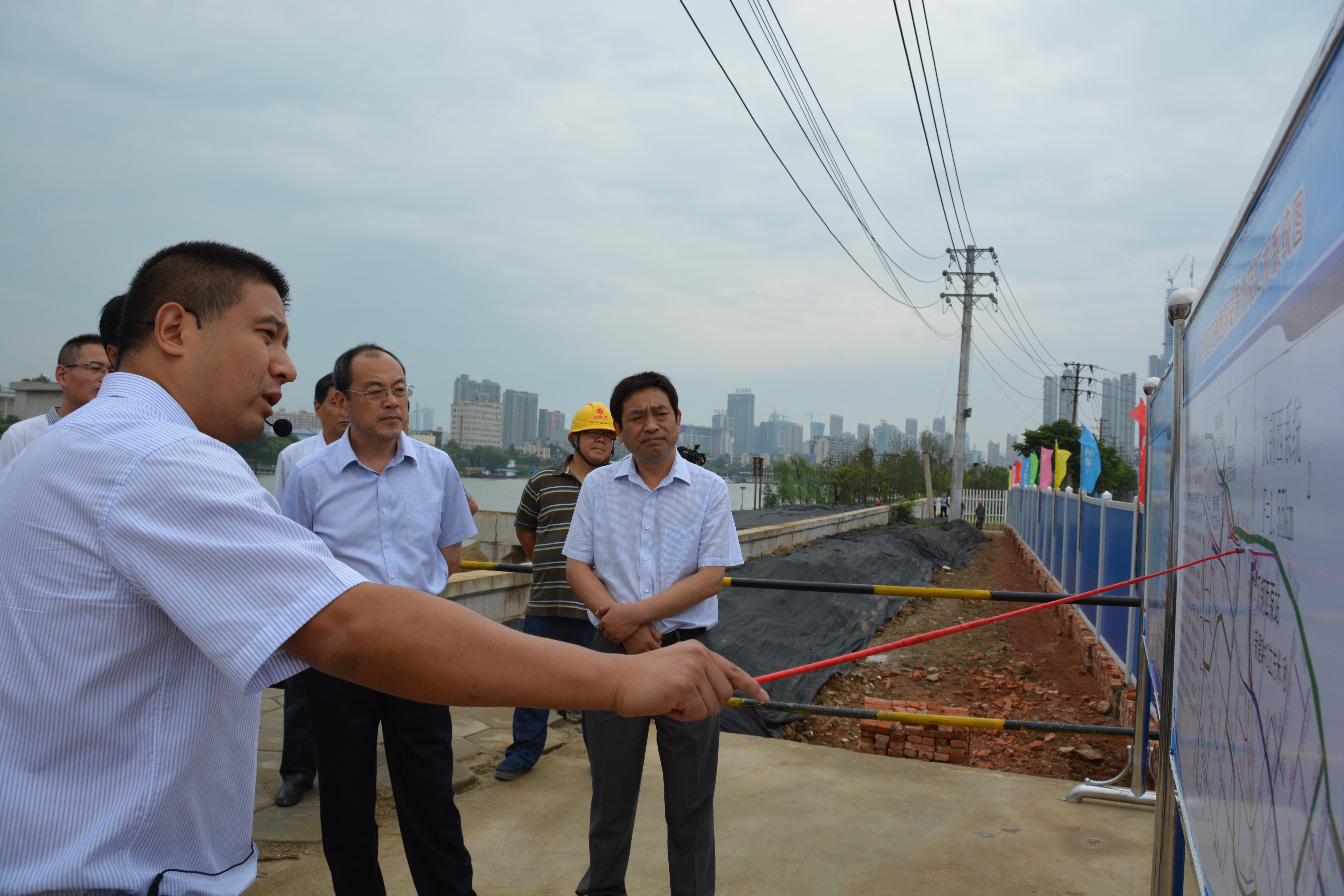 7月6日上午,省委常委、市委書記阮成發(fā)率隊(duì)檢查全市防汛抗旱工作,其中一站就是由鐘鑫公司承建的漢鋼西泵站工程。