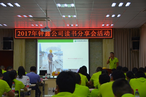書籍是人類進(jìn)步的階梯,讀一本好書,就像和許多高尚的人談話。為了引導(dǎo)公司職工牢固樹立社會(huì)主義核心價(jià)值觀,激發(fā)領(lǐng)導(dǎo)員工愛讀書、讀好書的學(xué)習(xí)熱情,不斷提升自主學(xué)習(xí)能力,著力把學(xué)習(xí)型企業(yè)建設(shè)向縱深推進(jìn),2017年9月22日下午15:00,鐘鑫公司2017年讀書分享會(huì)活動(dòng)在鐘鑫公司一號(hào)會(huì)議室隆重舉行,鐘鑫公司黨支部書記、董事長(zhǎng)方紫微,鐘鑫公司黨支部副書記、總經(jīng)理涂軼銘,鐘鑫公司副總經(jīng)理徐浩,鐘鑫公司總工程師汪定國(guó),漢陽市政各分子公司辦公室主任、同事以及鐘鑫公司80余位職工代表共同參加本次活動(dòng)。