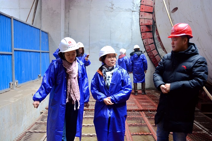 隨后,張平帶領(lǐng)郭艷一行來到車站負(fù)一層,張平對5號線第七標(biāo)段施工過程中的技術(shù)重難點(diǎn)進(jìn)行了深入的講解,并帶領(lǐng)大家參觀了建設(shè)十一路站車站結(jié)構(gòu)成品保護(hù)和工程BIM建設(shè)情況,觀看了本工程建設(shè)全程的BIM技術(shù)運(yùn)用動畫視頻。在車站負(fù)二層,郭艷一行參觀了漢陽市政1號盾構(gòu)機(jī),張平就地鐵隧道盾構(gòu)機(jī)施工工藝進(jìn)行了言簡意賅的講解,郭艷對漢陽市政盾構(gòu)工藝和設(shè)備表示了贊揚(yáng)。