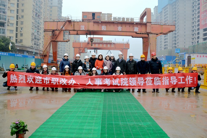 1月16日下午14:30,武漢市人事考試院副院長郭艷、朱江等一行來到武漢市軌道交通5號線工程第七標(biāo)段進(jìn)行現(xiàn)場調(diào)研,漢陽市政集團(tuán)公司黨委副書記陳穎、副總經(jīng)理邢榮斌等人陪同調(diào)研。
