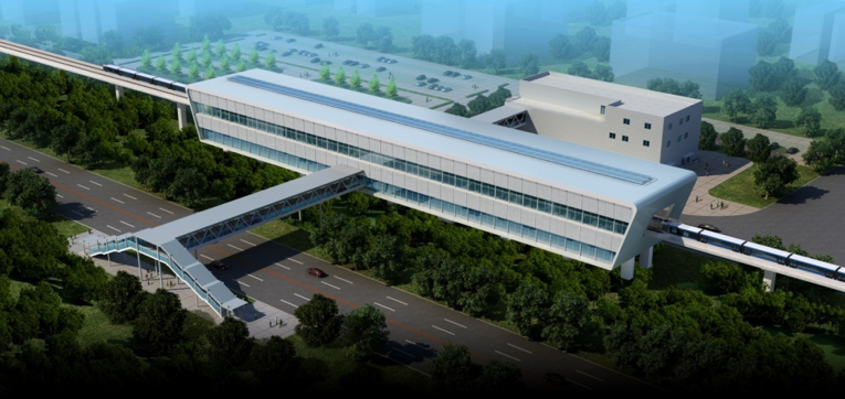 武漢市軌道交通21號線一期工程新榮站、施崗站土建工程(第二標(biāo)段),施工范圍為施崗站車站主體結(jié)構(gòu)、人行天橋及附屬用房工程。車站主體結(jié)構(gòu)為雙墩柱門式地面三層側(cè)式高架車站,地面一層為架空層,地面二層為站廳層,地面三層為站臺層,站臺層上面設(shè)鋼結(jié)構(gòu)雨棚。工程于2014年12月26日開工,于2017年11月15日竣工,并被評為2016年武漢市建設(shè)工程安全文明施工示范項(xiàng)目。