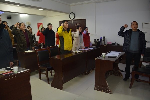 會(huì)議伊始,由涂軼銘書(shū)記通報(bào)到會(huì)情況,帶領(lǐng)大家高唱國(guó)歌,然后舉起右拳,重溫入黨誓詞;接著帶領(lǐng)大家學(xué)習(xí)《中共中央發(fā)出通知:部署黨的十九大代表選舉工作》、“九嚴(yán)禁”“九必須”換屆紀(jì)律以及市委關(guān)于推薦提名湖北省出席黨的十九大代表候選人工作有關(guān)精神的傳達(dá)學(xué)習(xí),以深化支部對(duì)換屆紀(jì)律的認(rèn)識(shí),著力營(yíng)造風(fēng)清氣正的選舉風(fēng)氣。在代表候選人推選環(huán)節(jié),黨員們積極行使選舉權(quán)利,紛紛舉手推薦人選,最后通過(guò)舉手表決的方式,推選出代表候選人人選?;顒?dòng)最后,涂書(shū)記通報(bào)了公司12月工程建設(shè)情況,向黨小組下發(fā)并帶領(lǐng)學(xué)習(xí)2017年第一期《鑫聲》期刊,對(duì)一年來(lái)的工作進(jìn)行總結(jié)。