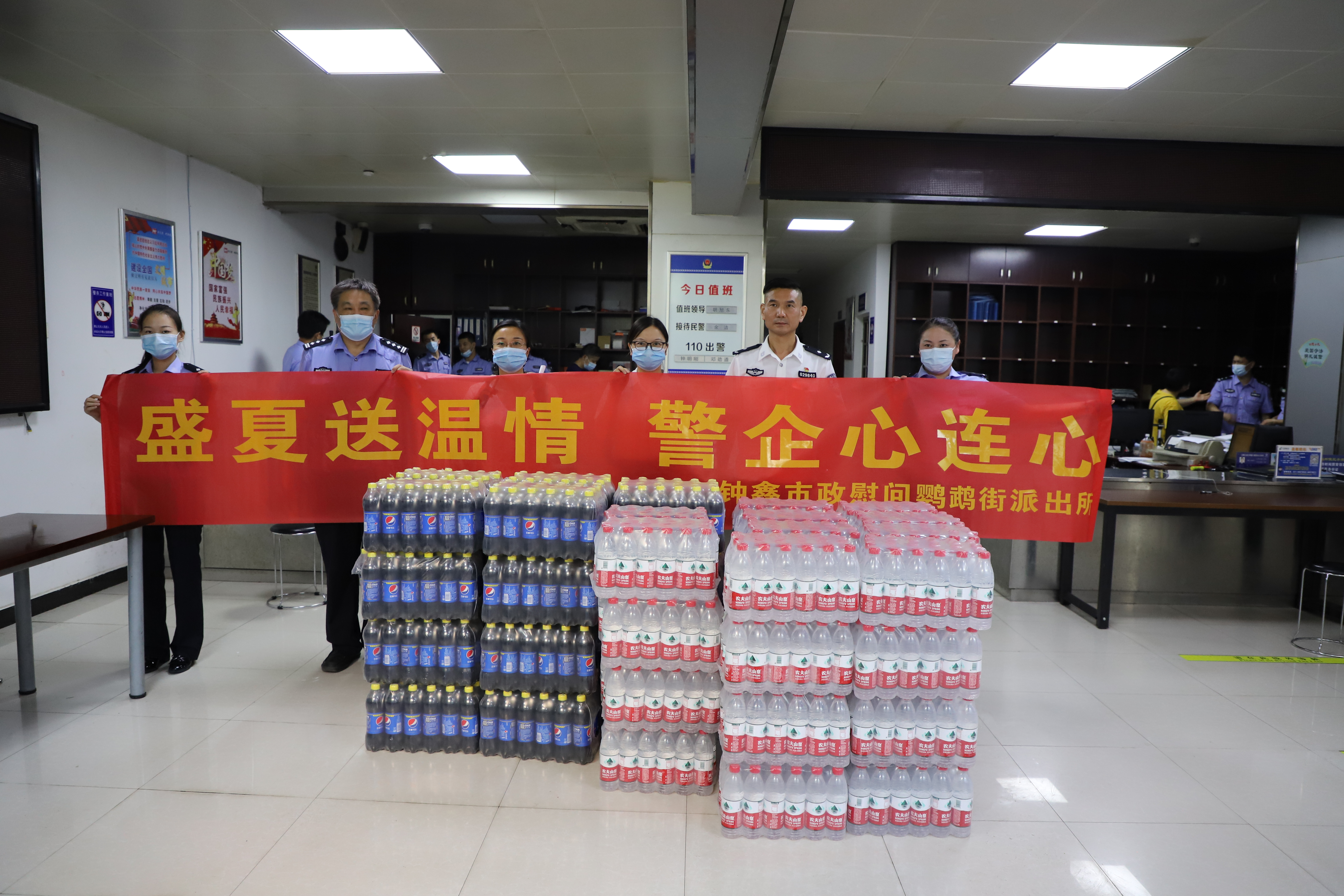 8月份的武漢,酷暑難耐,烈日下,街道的基層民警還在為防疫防汛工作而奔勞。8月19日上午,為感謝鸚鵡街派出所的民警同志們在疫情防控期不懼危險,始終堅持一線,在防汛排澇中日夜堅守,守護江城人民安全,漢陽市政鐘鑫公司特購買防暑降溫物資,由工會主席肖艷霞帶隊前往鸚鵡街派出所,慰問這些默默守護人民生命財產(chǎn)安全的基層民警。