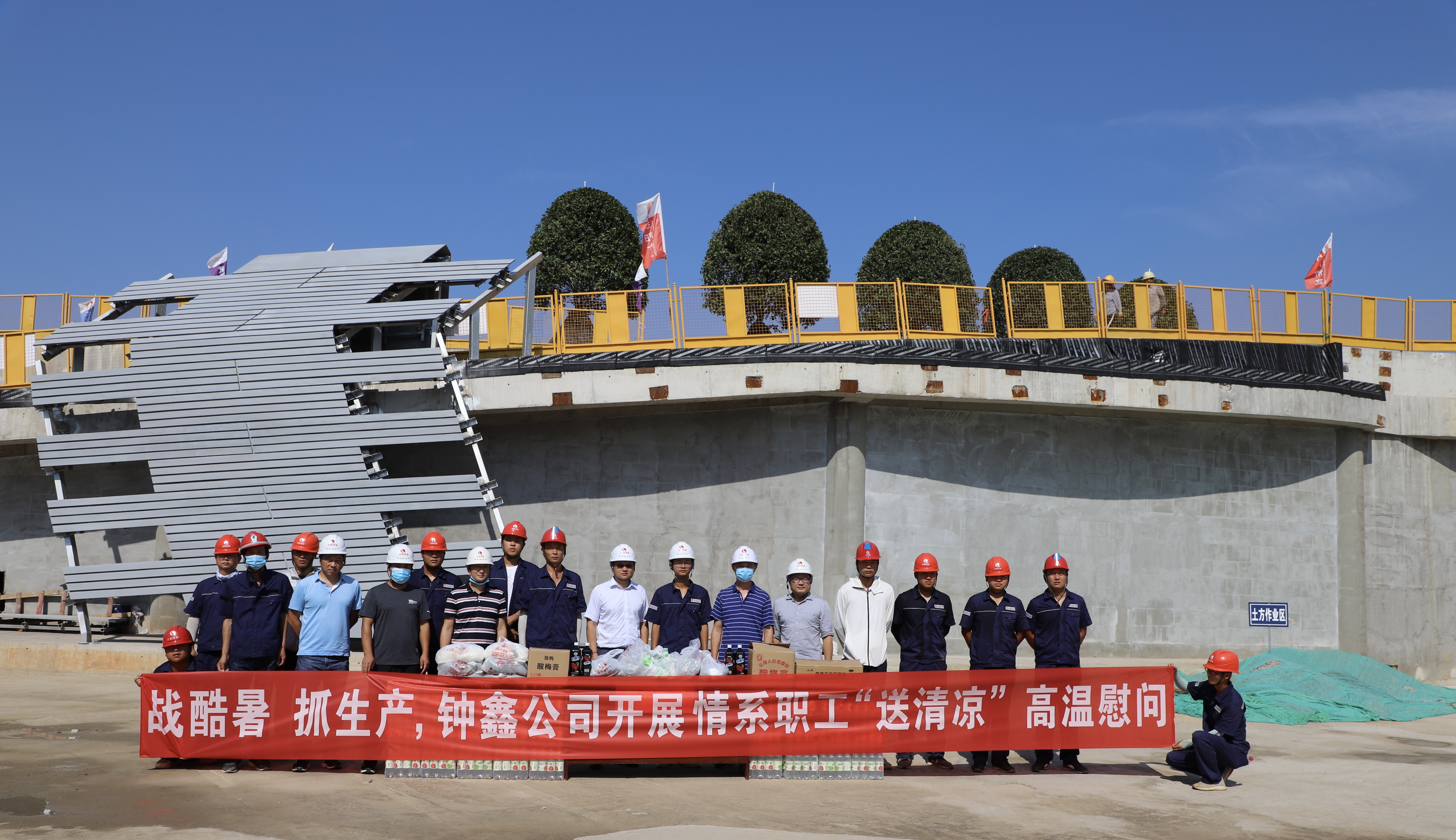 防汛工作剛結(jié)束,武漢又進(jìn)入持續(xù)高溫模式。近期,武漢氣溫連日高達(dá)37℃以上,但廣大一線施工人員仍夜以繼日?qǐng)?jiān)守崗位,爭(zhēng)分奪秒搶奪工期,全力以赴保障生產(chǎn)。8月18日上午,鐘鑫公司黨支部書(shū)記、董事長(zhǎng)陳俊俊帶隊(duì),赴月亮灣城市陽(yáng)臺(tái)項(xiàng)目、地鐵5號(hào)線第7標(biāo)段土建工程項(xiàng)目、地鐵19號(hào)線第5標(biāo)段土建工程項(xiàng)目等六個(gè)項(xiàng)目,關(guān)心慰問(wèn)堅(jiān)守崗位的一線施工人員,為他們送去一份清涼。