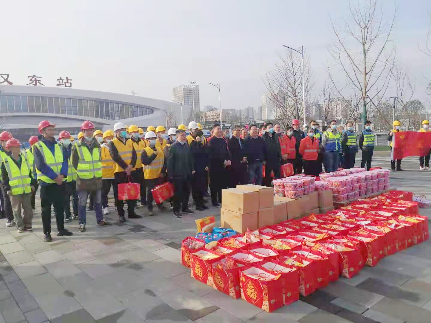 明銘肯定了各參建單位對(duì)武漢東站及配套道路工程建設(shè)項(xiàng)目的全力支持,并對(duì)春節(jié)期間留漢人員一如既往的辛勤堅(jiān)守表達(dá)感謝。同時(shí),他也對(duì)各參建單位提出相關(guān)要求,一定要切實(shí)做好春節(jié)期間留漢員工的疫情防控和生活物資保障工作,讓每個(gè)留漢人員都能感受到“家”的溫暖。最后,明銘一行向所有的留漢人員派發(fā)了春節(jié)慰問(wèn)禮包,并表達(dá)了節(jié)日的祝福,現(xiàn)場(chǎng)氣氛活躍,其樂(lè)融融。留漢人員表示,感謝領(lǐng)導(dǎo)的關(guān)懷,即使在異鄉(xiāng),也感受到了家鄉(xiāng)的親切,只要國(guó)家、政府有需要,建筑人堅(jiān)決執(zhí)行,義不容辭。