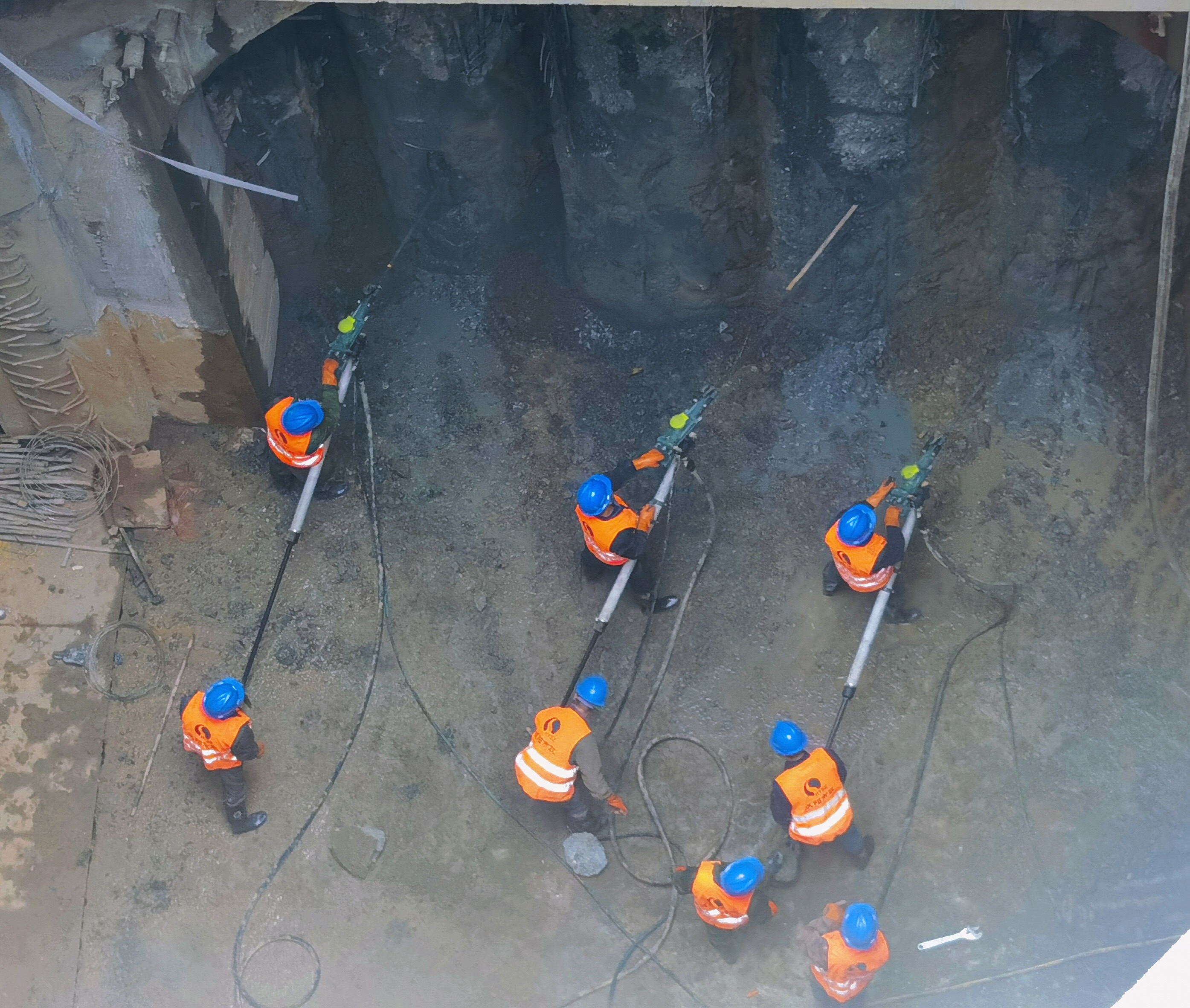 19.5標(biāo)項(xiàng)目是公司首次承接的礦山法施工隧道,也是漢陽市政鐘鑫公司目前最大的單個(gè)地鐵項(xiàng)目,且地質(zhì)復(fù)雜,巖層較硬,每段線路間開挖的方式均不同,較高的風(fēng)險(xiǎn)系數(shù)和較大的技術(shù)難度給項(xiàng)目團(tuán)隊(duì)帶來很大挑戰(zhàn)。為對(duì)項(xiàng)目施工進(jìn)行精準(zhǔn)把控,在策劃階段,公司對(duì)工程風(fēng)險(xiǎn)、總體籌劃、場地布置、人材機(jī)配置和技術(shù)重難點(diǎn)等提前分析預(yù)判并針對(duì)性編制施工方案;在具體施工過程中,項(xiàng)目團(tuán)隊(duì)嚴(yán)格遵循“管超前、嚴(yán)注漿、短進(jìn)尺、強(qiáng)支護(hù)、緊封閉、勤量測”的十八字方針,對(duì)現(xiàn)場實(shí)行統(tǒng)一領(lǐng)導(dǎo)、分級(jí)管理,為后續(xù)施工做充足準(zhǔn)備。
