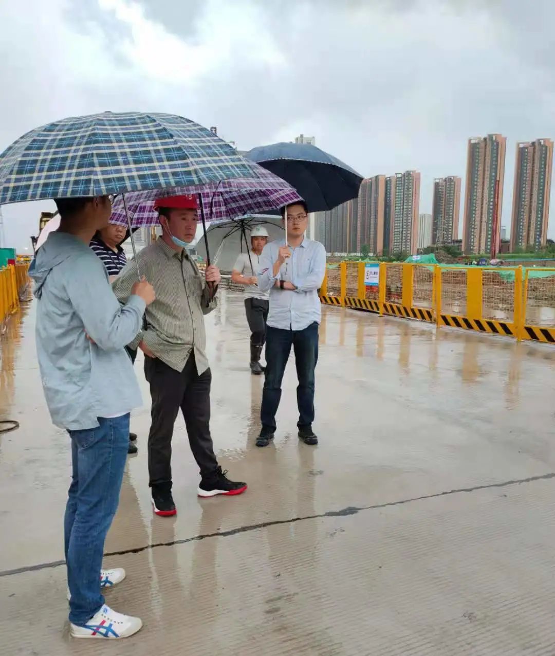 △公司領(lǐng)導(dǎo)班子在項目現(xiàn)場了解防汛、工程進度工作