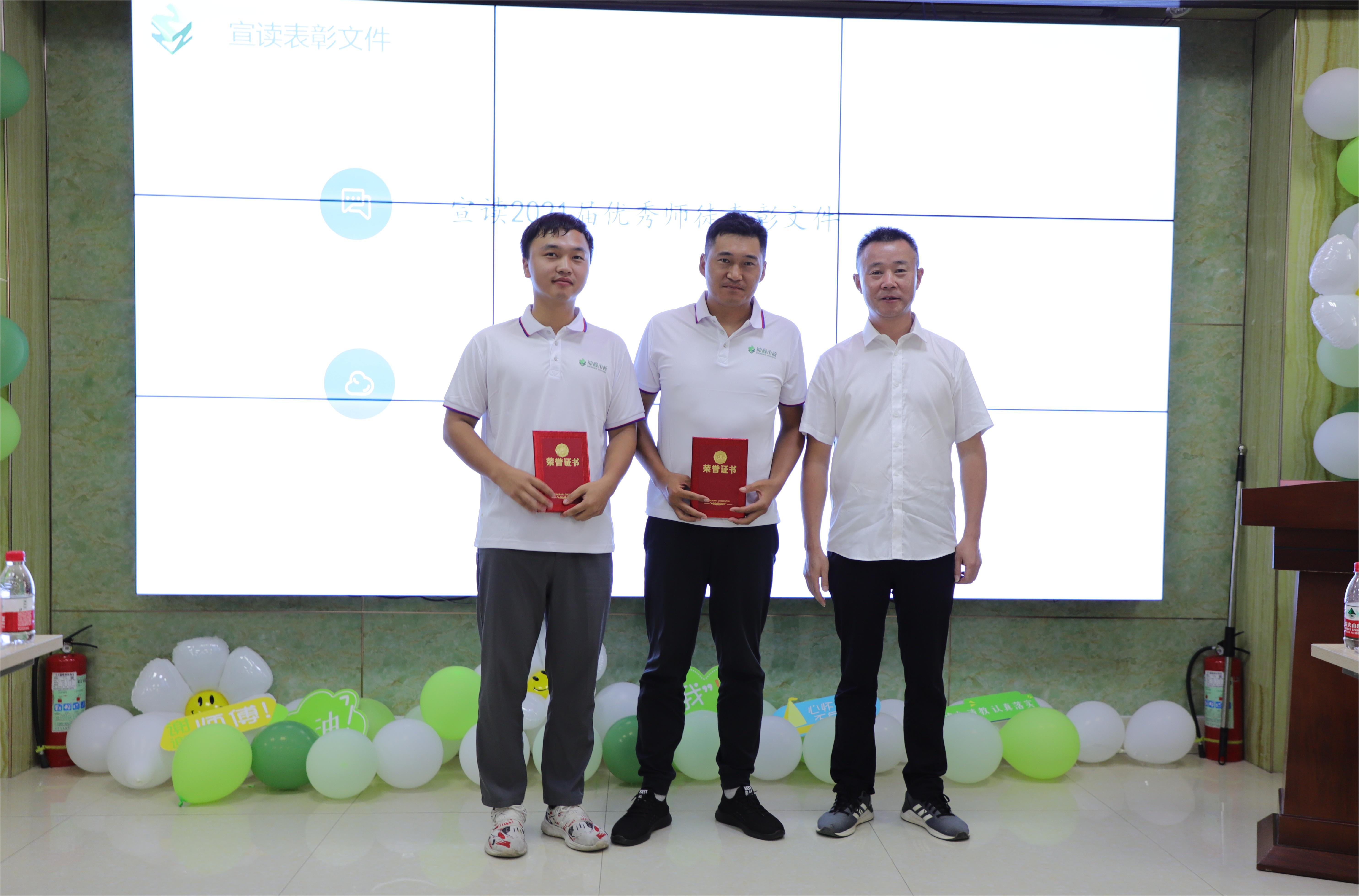 為激勵(lì)先進(jìn),樹立標(biāo)桿,根據(jù)《武漢鐘鑫市政建設(shè)工程有限公司“師帶徒”管理方案》,結(jié)合2021年度徒弟績效考核結(jié)果以及評(píng)優(yōu)評(píng)先活動(dòng),經(jīng)嚴(yán)格評(píng)比,授予陳文和徐軍濤2021屆鐘鑫公司“優(yōu)秀師徒”稱號(hào),李艷娥同志宣讀2021屆優(yōu)秀師徒表彰文件,黨支部副書記、總經(jīng)理盧永紅為徐軍濤、陳文頒發(fā)證書。